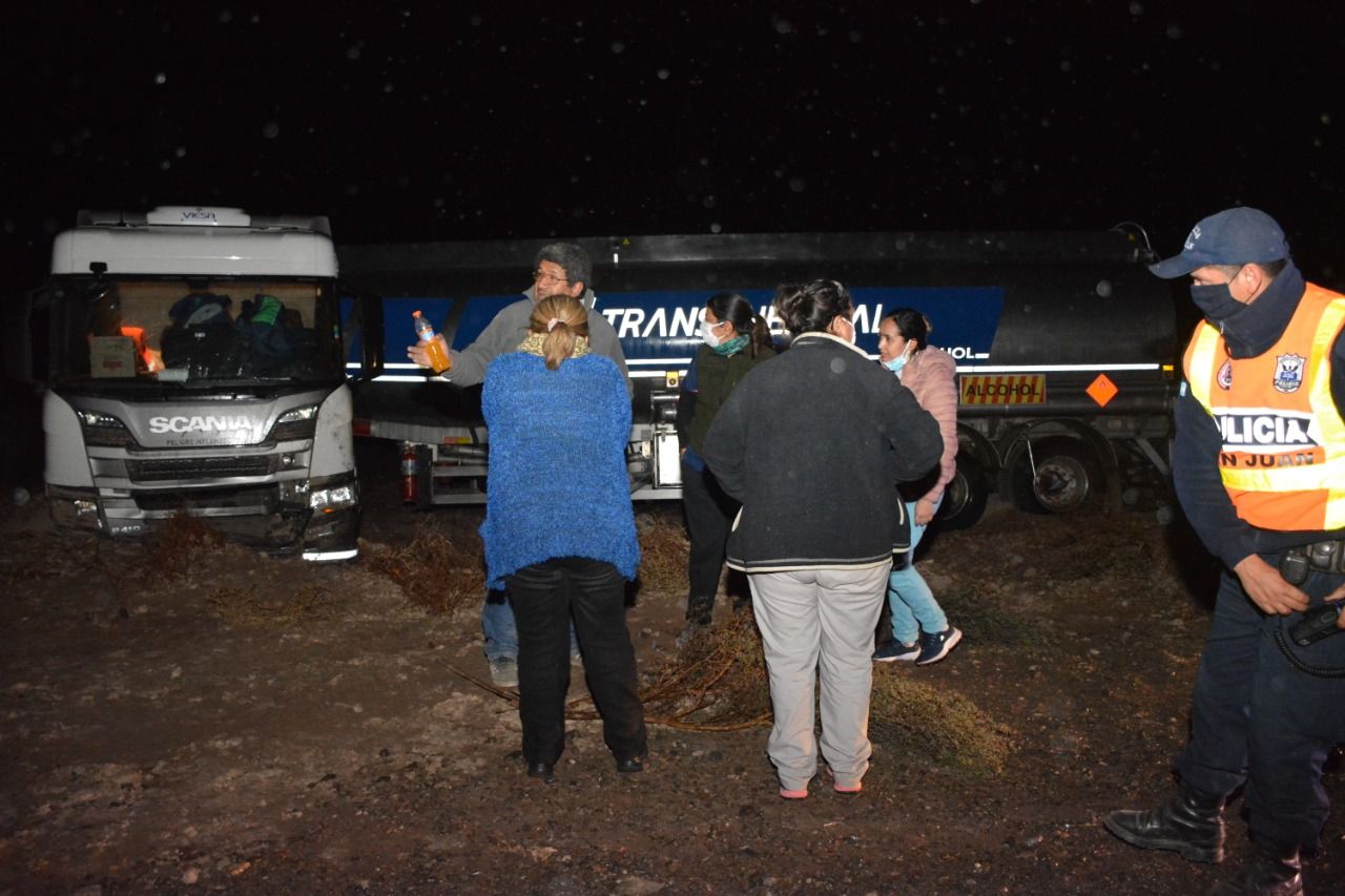 Policías de la Seccional 8° de Sarmiento, junto con personal de Salud Pública que regresaba de realizar los controles diarios de Covid-19 en el puesto fronterizo, asistieron al chofer que no sufrió lesiones.
