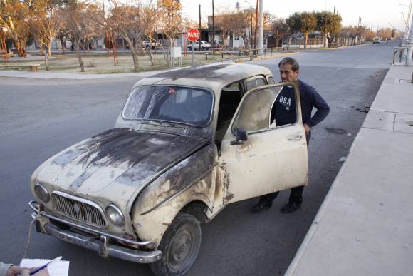 Un hombre se llevó un gran sobresalto cuando circulaba ayer a las 18,30 a bordo de su Renault 4 (foto) por el Conector Sur y Guayaquil, Rawson. El rodado comenzó a arder por una supuesta pérdida de combustible y el motor y parte del interior terminaron quemados. Por suerte, Alberto Sigalat -el conductor-, dijo que fue auxiliado por vecinos y otros automovilistas antes de que su vehículo ardiera por completo.
