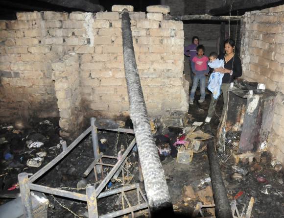 Reinoso está engripado, por eso ayer no fue a trabajar y se quedó en cama con sus hijos, Braian de 8 años y Tiago de 5 meses. Al mediodía, se levantó a cocinar. En esos momentos fue que su hijo mayor se puso a jugar con un encendedor en el único dormitorio de la casa. ‘Escuché cuando me dijo: papá, está saliendo humo. Y ya se estaba prendiendo fuego la cama’, relató el obrero. Sin pensarlo dos veces, alzó a los niños y corrió hacia afuera. Braian no se quemó de milagro, pues el fuego le ‘chamuscó el pelo y la polera’, contó su mamá.