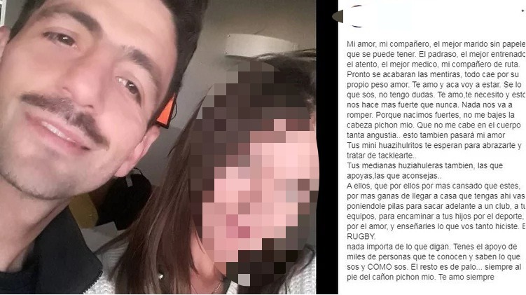 La mujer (no es identificada para proteger su integridad) le había dedicado un extenso mensaje vía Facebook en el que le decía "sé lo que sos, no tengo dudas" y en el que lo describía como "el mejor marido sin papeles que se puede tener".