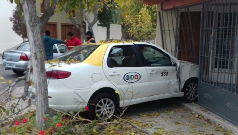 Un taxi quedó incrustado en el frente de una vivienda ubicada en Juan José Paso y Olegario Andrada, en Desamparados, Capital, después de que a las 9 de ayer hiciera una maniobra brusca para esquivar otro vehículo que se le atravesó, dijeron fuentes policiales. El conductor, un joven de 27 años, no sufrió lesiones de gravedad, indicaron (foto Radio Colón).