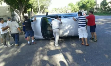 Este miércoles se registró un espectacular accidente en Rivadavia, en el que una mujer se salvó de milagro al volcar con su auto.