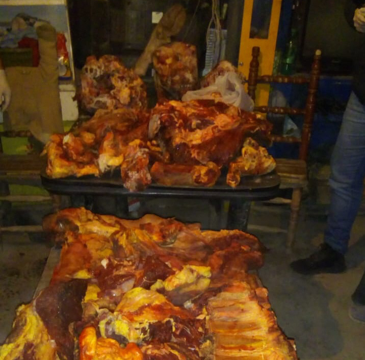 Personal de la Brigada Sur que dirige el comisario Adrián Servant allanó ayer dos domicilios en Colonia Fiscal Sur, Sarmiento, y secuestró 240 kg de carne vacuna, cuchillos, un machete, un Rastrojero y otros elementos que creen que están vinculados a un robo de vacas ocurrido días atrás en el paraje Retamito. Apresaron a Ariel Díaz (38), indicaron en la Fuerza.