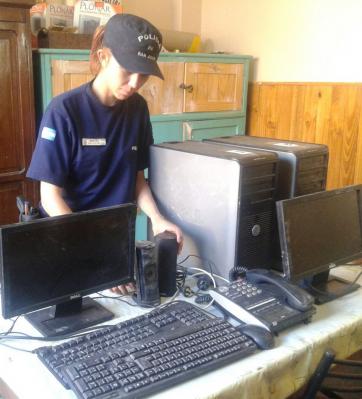 Un obrero que trabaja en una finca de 25 de Mayo encontró el martes pasado en unas malezas 2 CPU, 2 teclados, 2 parlantes y 2 monitores de 14’ que fueron robados el último viernes de una escuela cercana: la Comandante Tomás Espora. Según la Policía, falta recuperar un estabilizador y un módem.