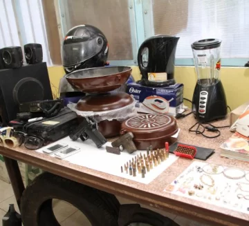 Los investigadores de Robos y Hurtos, al mando del subcomisario Domingo Sombra, iban tras los pasos de dos sujetos apodados ‘El Poteiro’ y ‘Toto’. Ambos son sindicados como los ‘motochorros’ que asaltaron al comerciante Alejandro Zalazar el 4 de este mes, en Santa Lucía. Los policías allanaron los domicilios de estos sujetos en Villa El Salvador, Chimbas, pero no los encontraron. Después localizaron su ‘aguantadero’ en el asentamiento Pedro Echagüe, Santa Lucía. Tampoco dieron con ellos, pero sí hallaron una pistola calibre 22, otra pistola de aire comprimido similar a una 9mm, un total de 93 proyectiles de distintos calibres, electrodomésticos, herramientas y otros objetos de dudosa procedencia.