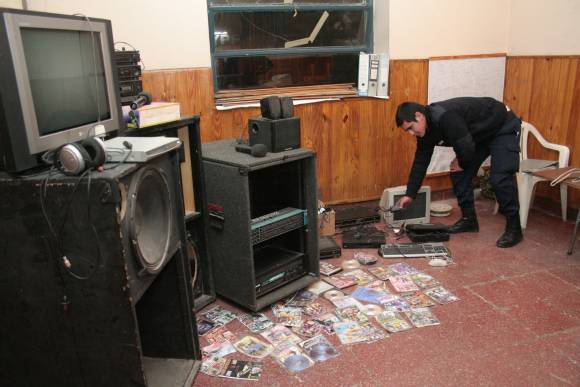 Un equipo de música, un TV, un DVD, 2 bazookas de audio, 3 micrófonos, 2 amplificadores, 2 ecualizadores, un monitor y teclado, un parlante de 18 pulgadas, un home theater, una lectograbadora, un decodificador, auriculares y 60 películas fue lo que hallaron ayer policías de Comisaría Segunda en una casa de Villa Candelaria, en Concepción, Capital. Según la policía, los pesquisas al mando del comisario Rubén Marinero, apresaron a Aníbal Oreste (45), quien no pudo justificar la procedencia de las cosas.