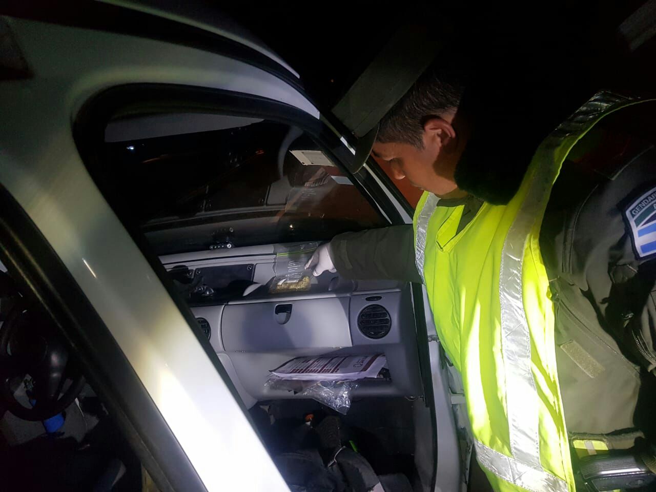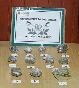 Los dos hombres transitaban las rutas en una camioneta Renault Kangoo. Al ser interceptados por los uniformados de la sección Las Flores, los gendarmes encontraron que trasladaban en el torpedo: una bolsa de nylon con cogollos de marihuana y, debajo del asiento del acompañante, diez envoltorios con picadura de la misma hierba. Lo que, traducido, alcanza a formar 400 dosis para consumir.