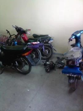 Según informaron fuentes policiales, el allanamiento en un taller se produjo luego de una investigación, ya que sospechan que las 4 motos 110cc y una Daelim, más un motor de 110cc, son robadas.