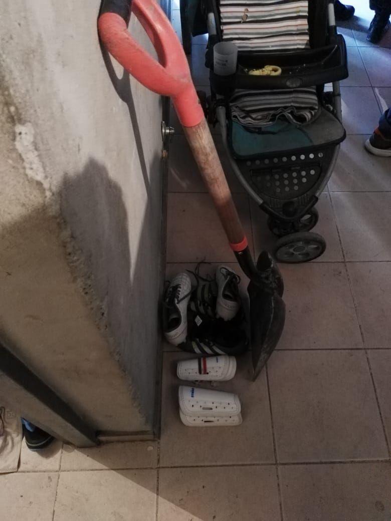 Hicieron allanamientos en domicilios del Barrio Las Moritas, de la zona de Ruta 270 y Falucho, en el Barrio Nikizanga, en Villa Juanita, en el Barrio Caucete y en Barrio Pie de Palo, donde secuestraron elementos robados como cuatro pares de botines de fútbol, una pala, un rifle, una punta tipo faca, una moto Daelim con motor 110 marca Motomel y dos armas tumberas.