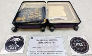 En ese momento, los oficiales detectaron mediante la máquina de rayos X varios elementos de material inorgánico en dos valijas de cabina por lo cual consultaron a la dueña, quien manifestó que se trataba de monedas de oro.