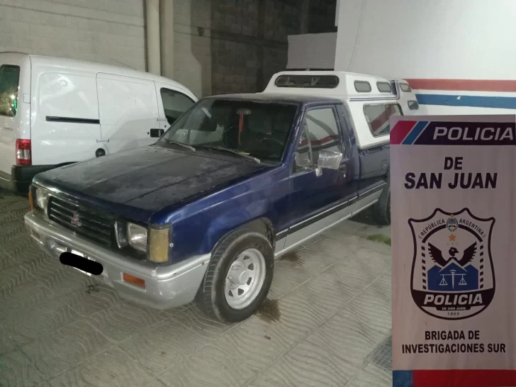 Según las fuentes, la camioneta Mitsubishi L200 tenia pedido de secestro de la División Robos y Hurtos de Automotores de Mendoza estaba estacionada en el interior de la Villa Huarpes, en Pocito.