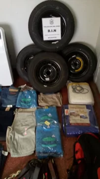 Los efectivos secuestraron una importante cantidad de elementos de dudosa procedencia, como neumáticos, ropa, mochilas, productos de tecnología, entre otros.