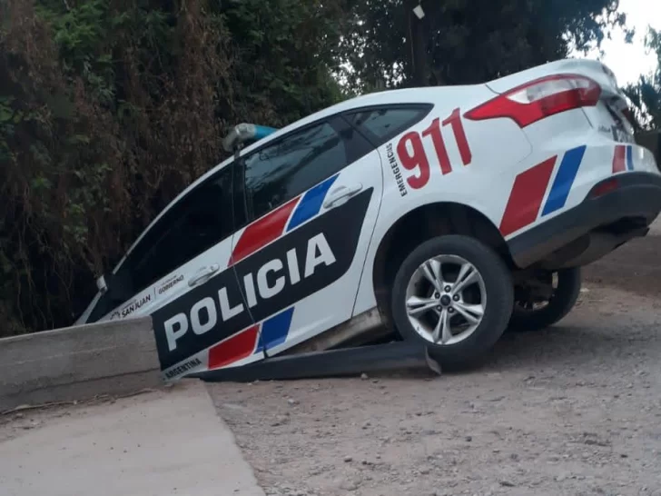 Poco después de las 18 se informó que un vehículo policial sufrió un accidente en calle Güemes casi Honduras, muy cerca de un conocido salón de fiestas, en el departamento Santa Lucía.