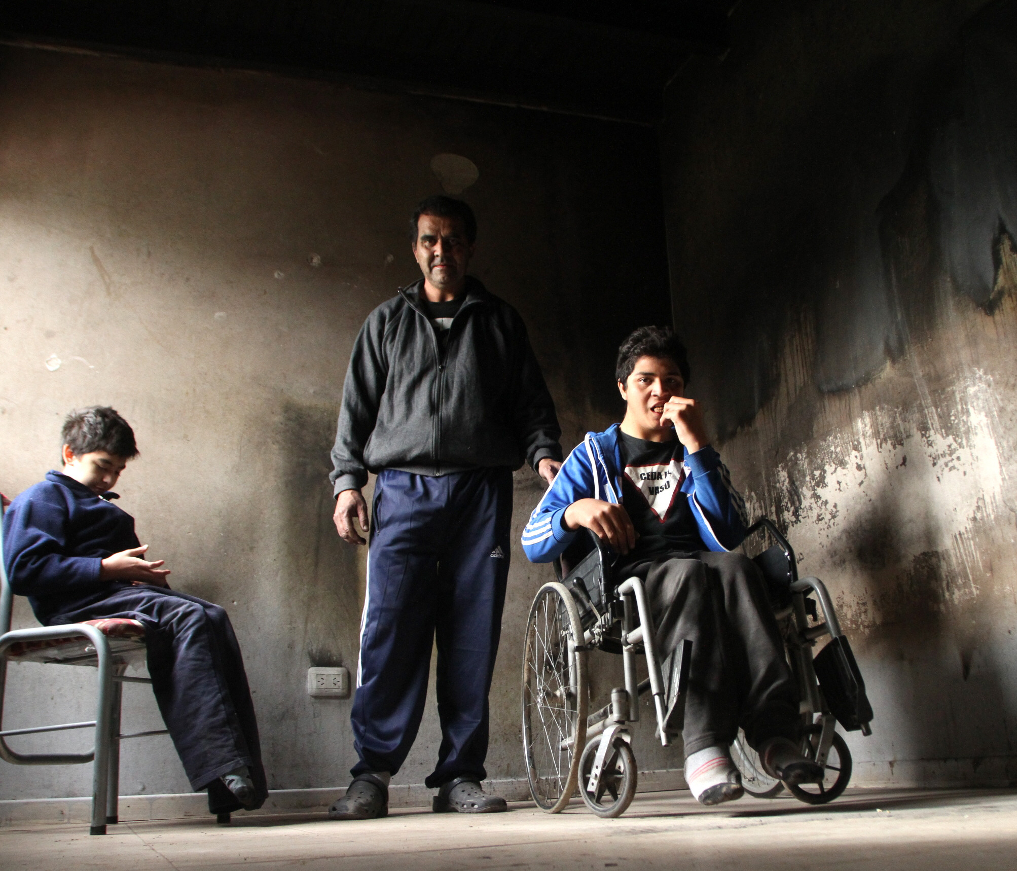 El incendio ocurrió a las 21.30 en la casa 10 de la manzana B del barrio Arce. Allí viven Castro, su esposa Rosalba Sosa (37) y sus cuatro hijos: Nahuel (19), Franco (17), Axel (10) y Milagros (7). Franco se moviliza en una silla de ruedas y su hermano Axel, quien además padece retraso madurativo, gatea. “Todos los días lavo los pisos para mantenerlos limpios porque los chicos gatean. Limpié una pieza y pasé todas las cosas a la pieza de los chicos. Nosotros siempre tomamos la precaución de esconder los encendedores, pero parece que Franco agarró uno sin que nos demos cuenta y se puso a buscar una pelota”, relató Carlos, quien hace 5 meses no consigue trabajo de albañil y hace 2 puso un kiosco para mantener su familia.