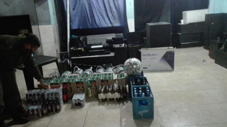 Además, los gendarmes incautaron 20 juegos de luces, tres máquinas de humo, tres reproductores de imágenes, tres notebooks, un CPU, dos monitores de PC, una pantalla gigante rebatible, dos consolas de música, tres micrófonos, cableados eléctricos y bebidas alcohólicas.