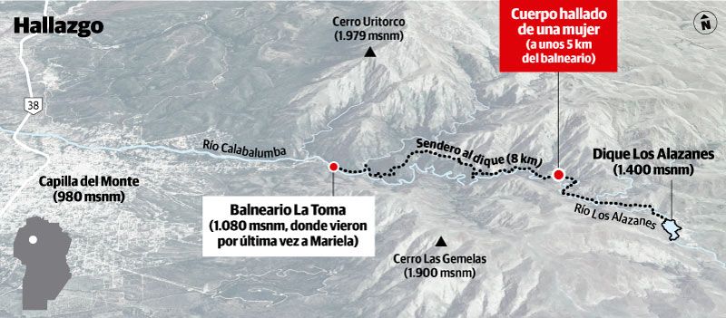 Encontraron a una mujer muerta cerca del dique Los Alazanes, en Capilla del Monte, zona donde buscan intensamente a Mariela Natali, de quien no se tiene rastros desde hace 15 días, y todo hace suponer que es el de la mujer santafesina.