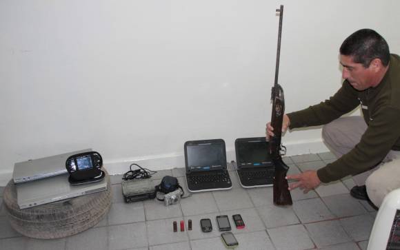 Pesquisas de Robos y Hurtos al mando del subcomisario Domingo Sombra, realizaron ayer 4 allanamientos en el asentamiento José Ignacio Díaz (conocido como ‘La Cueva del Chancho’) en Chimbas, y allí detuvieron a Nicolás ‘Chupa’ Moreno, reconocido en fotos por un remisero como el sujeto que lo encañonó y le robó varias cosas el pasado 20 de junio. Secuestraron una rueda de auxilio, un estéreo, 2 DVD, 4 celulares, una Play Station Portátil, un rifle calibre 22, 3 cartuchos de escopeta y 2 netbooks del Plan Conectar Igualdad que, se sospecha, son robados, informó la Policía.