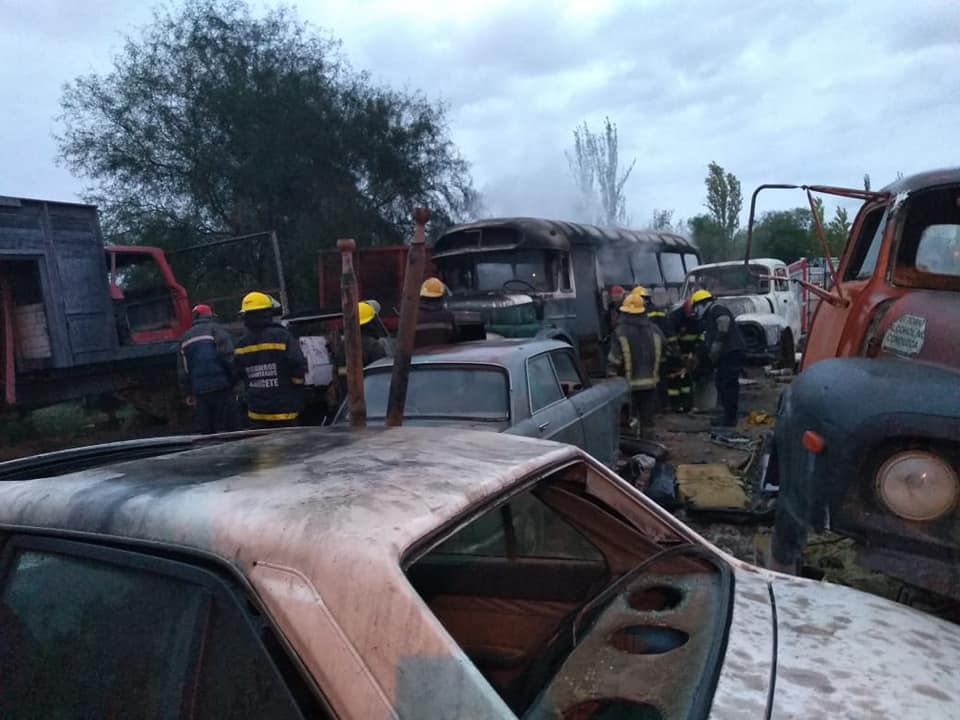 Un incendio ocurrido en el interior de un colectivo en desuso en medio de una chacharita de Caucete, causó revuelo en la tarde del viernes.