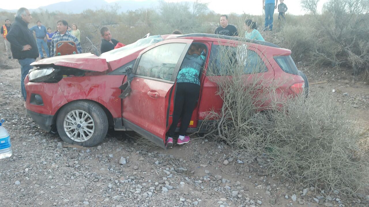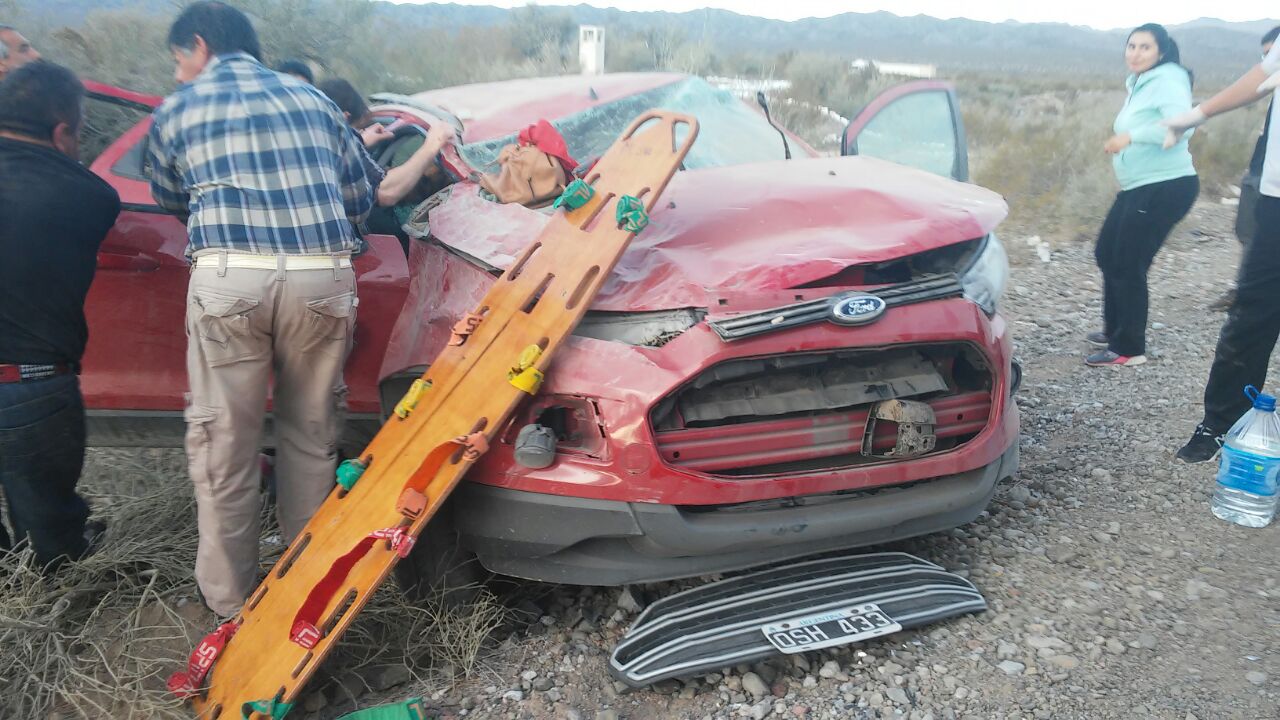 Según informaron las fuentes, el siniestro vial se produjo en inmediaciones de Ruta 40, a la altura del camino hacia el derivador que conecta con las arterias hacia Calingasta e Iglesia. Aparentemente, la conductora de la Ford Eco Sport perdió el control, se salió de la calzada y el vehículo volcó.