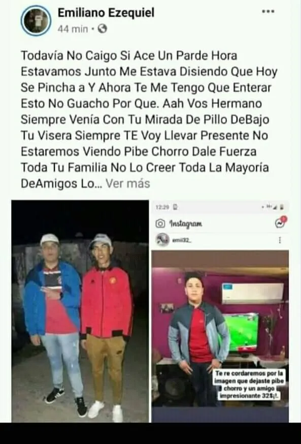 Por otra parte, uno de los amigos del ladrón de 17 años abatido, lo despidió a través de las redes sociales con sentidos mensajes hacia su compañero.