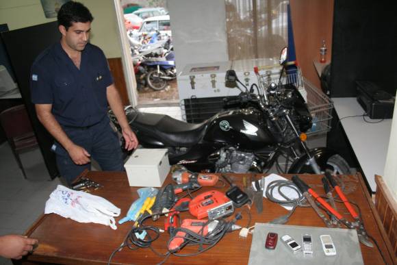 Una mujer de 31 años fue detenida (buscan a su pareja) por policías de la seccional 6ta. de Rawson al mando del comisario Adolfo Jofré en el asentamiento General Mosconi, porque en su casa encontraron varias cosas cuya propiedad no pudo justificar. Según la policía, los pesquisas secuestraron una pistola Browning 9mm. (no sería de la fuerza), cartuchos, un freezer, una cámara fotográfica, herramientas varias, dos DVD y una soldadora, entre otras cosas.