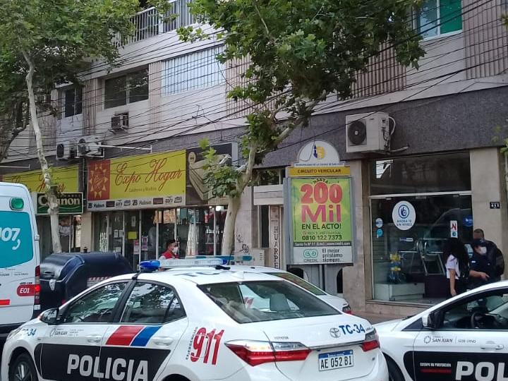 Apenas unos minutos antes de las 17:30 de este sábado, casi una decena de patrulleros se apersonó en la equina de calle Mendoza y Santa Fe, pleno centro sanjuanino.