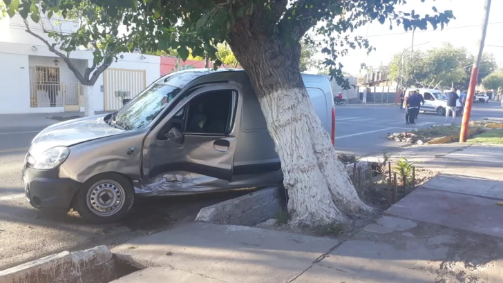 Una camioneta terminó contra un árbol después de chocar contra otro vehículo en una esquina con semáforo en Chimbas.