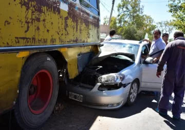 Un hombre de 60 años perdió el control de su Toyota Corolla ayer en la mañana y terminó incrustado con el coche en la parte baja de un viejo colectivo estacionado en calle 9 de Julio, casi Urquiza, en Capital. Es de apellido García y sólo sufrió golpes que no revestían gravedad, informó la Policía.