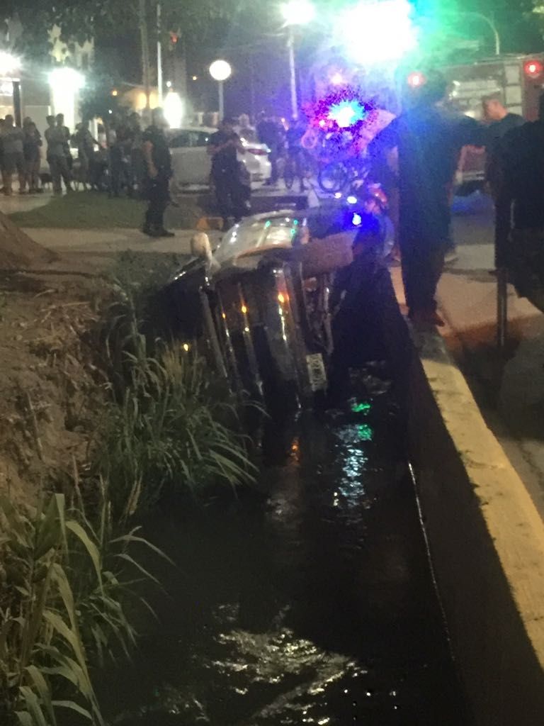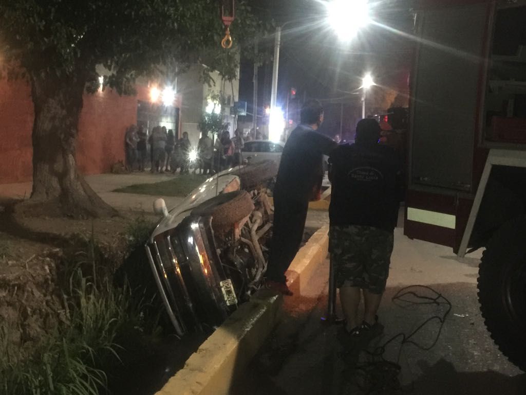 Un terrible accidente se produjo durante la noche del sábado en Santa Lucía. Una camioneta terminó de costado en el interior del canal.