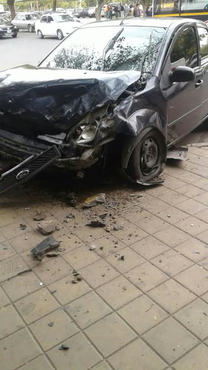 Un espectacular accidente de tránsito se produjo este mediodía en el cruce de calles Santa Fe y Estadso Unidos, en Capital, detrás de la Terminal. Un Ford y un utilitario impactaron, terminando el primero de ellos con la trompa destrozada, subido a la vereda.