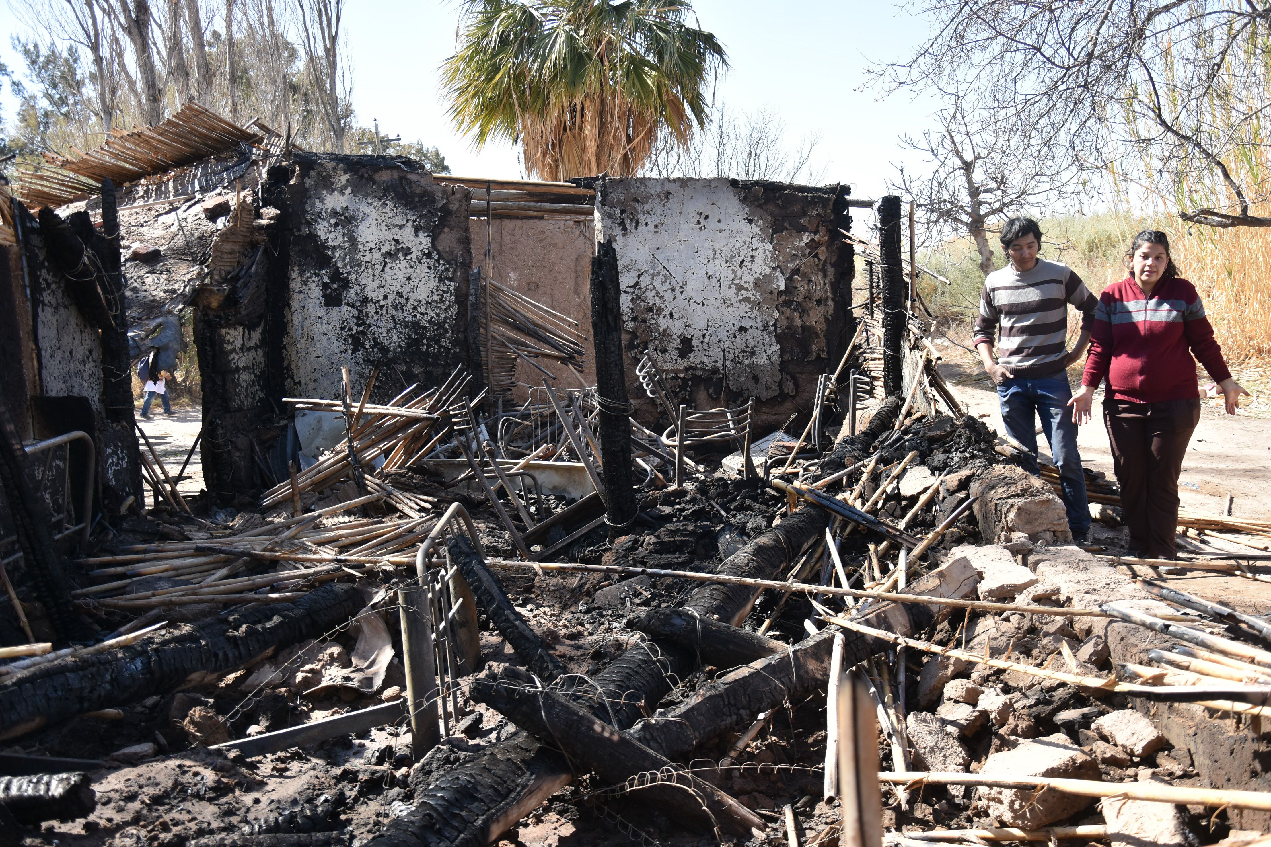 Morales había salido a hacer unos trámites a Capital, su marido trabajaba en una plantación de pistacho y los chicos estaban en la casa de una abuela. "Como a las 18 me llamaron para decirme que se había escuchado una explosión y que se estaba prendiendo fuego la casa", contó la mujer. Al parecer, la vivienda no tenía ningún tipo de ventilación y el gas que se fugaba por la manguera de la garrafa hizo desastre cuando tomó contacto con la heladera en funcionamiento. El fuego que empezó en la cocina se extendió rápidamente a toda la vivienda y en pocos minutos la construcción ardía completamente. Los vecinos primero y luego los bomberos llegaron al lugar para apagar las llamas, pero el daño para entonces estaba hecho. La familia perdió prácticamente todo: desde un juego de mesa y sillas que todavía pagan en cuotas hasta los medicamentos del chiquito epiléptico y los estudios del embarazo de Morales, indicó la mujer. Además, gran parte de las paredes y el techo de caña y palos se vino abajo, por lo que se tuvieron que ir de la casa.