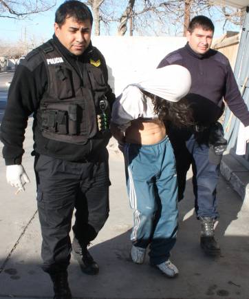 Un hombre de 35 y su sobrino de 22, fueron detenidos ayer a las 9 por el oficial Jorge Mercado y el agente José Laviña (Comando Radioeléctrico) sospechados de robarle minutos ante a un remisero una campera, una rueda de auxilio y el gato del auto. Según la Policía, los sospechosos son de apellido Orrego y fueron apresados en el Bº Buenaventura Luna, Rawson.