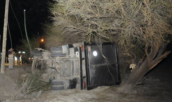Un chapista sacó el camión Ford 350 que le dejaron para reparación y en eso que daba una vuelta ayer a las 19.40, tiró un poste de iluminación y terminó volcando a un costado de la ruta 12, al Oeste del “Cable Carril”, en el ingreso a Zonda. El accidente tuvo como protagonista a Sergio Fernández (30), quien aparentemente se durmió en una curva del km 20 de esa ruta, dijo la Policía. Salió ileso, señalaron. A las 18.30 hubo otro vuelco en la ruta 510, cerca del cruce con ruta 141, en localidad caucetera de Marayes. El bonaerense Carlos Zublin (70) se dio vuelta con su Renault Megane, informó la Policía. Sufrió lesiones leves.