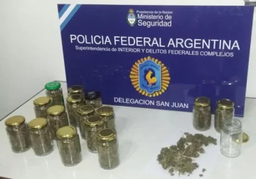 Efectivos de la delegación local de la Policía Federal persiguieron a un sujeto en Ullum que en medio de la fuga tiró una mochila en la que llevaba 16 frascos con ‘cogollos’ de marihuana. La droga pesó alrededor de un kilogramo, dijeron fuentes policiales. Esto pasó ayer a las 20 en la Ruta 60, antes de la entrada a Villa Ibáñez, y el sujeto logró escapar al cerco policial, señalaron en esa fuerza.