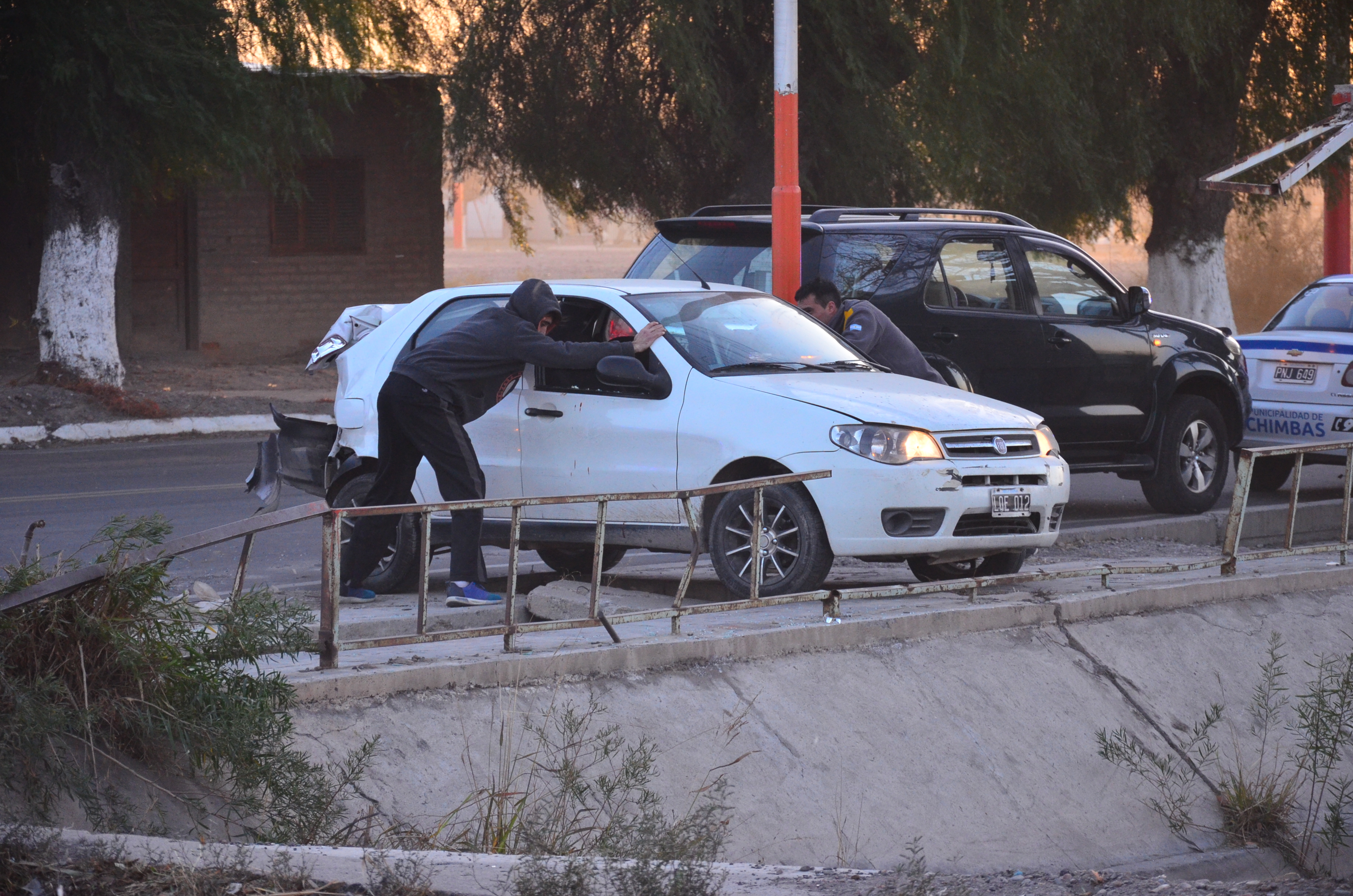 Según fuentes policiales, un vehículo Fiat Siena habría sido impactado desde atrás por una camioneta rompiéndole el costado derecho del rodado.