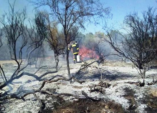 Según informaron desde el cuartel, el llamado llegó a las 14,40 y la tarea se complicó debido a que no había un camino seguro para acceder a la zona afectada en el camión cisterna que cargaba 8.000 litros de agua.