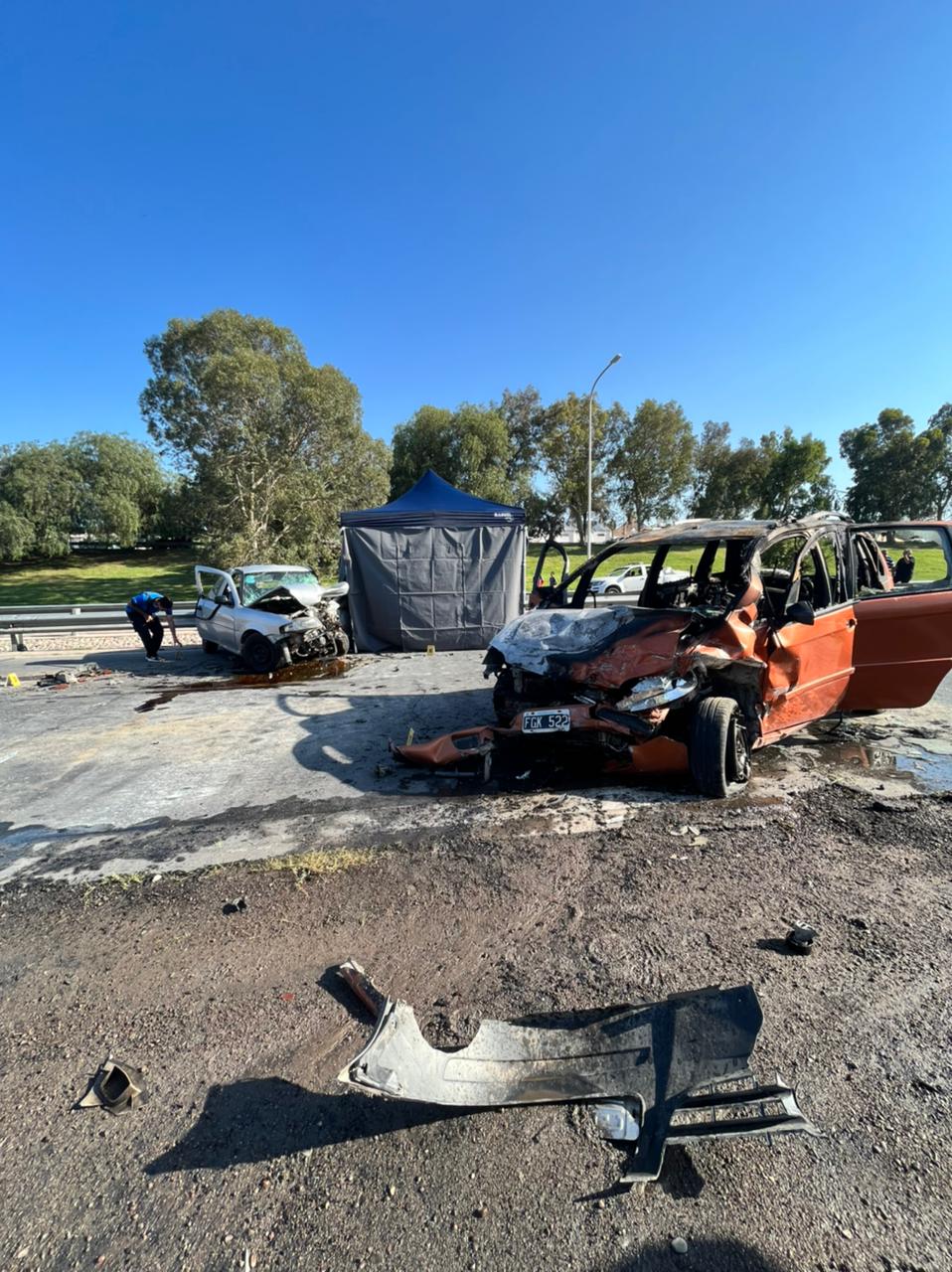 El impacto fue frontal, violento y fatal para el conductor del Gol, cuyo cuerpo quedó aprisionado en el vehículo, sin ninguna chance. Diferente fue la suerte para los ocupantes del Fiat Idea, que pudieron salir cuando comenzó a incendiarse el auto.