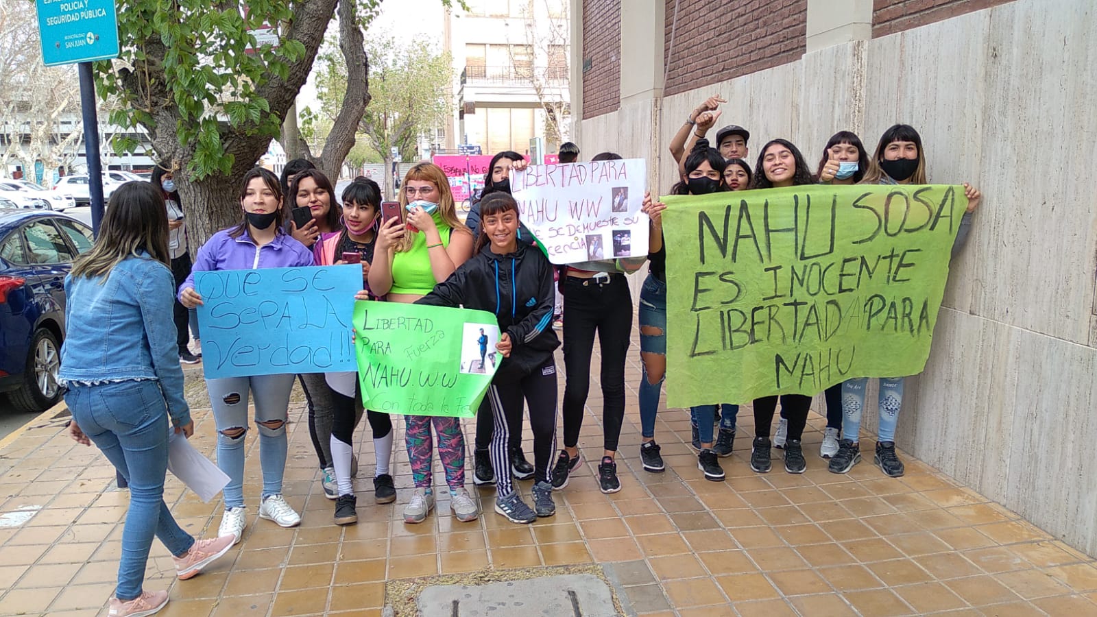 Nahuel Guardia Sosa es un trapero que se hace llamar "Nahu WW", tiene varios videos en You Tube y hoy recibió el cariño en el ingreso a la sede judicial. Un grupo de jóvenes, en su mayoría chicas, le hicieron el aguante al sospechoso con banderas, carteles y cánticos pidiendo "libertad".