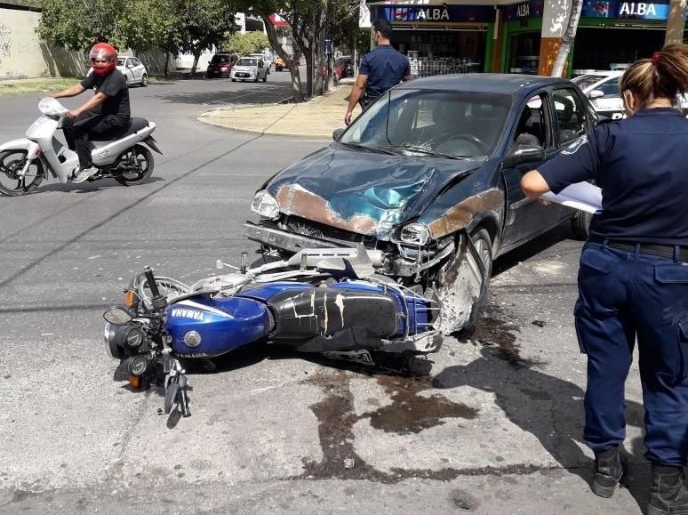 El miércoles pasado a plena luz del día, se produjo un violento choque entre un Chevrolet Corsa y una moto Yamaha 150cc, en la intersección de avenida Rioja y calle Maipú, en Capitlal. Un hombre resultó gravemente herido y terminó hospitalizado.