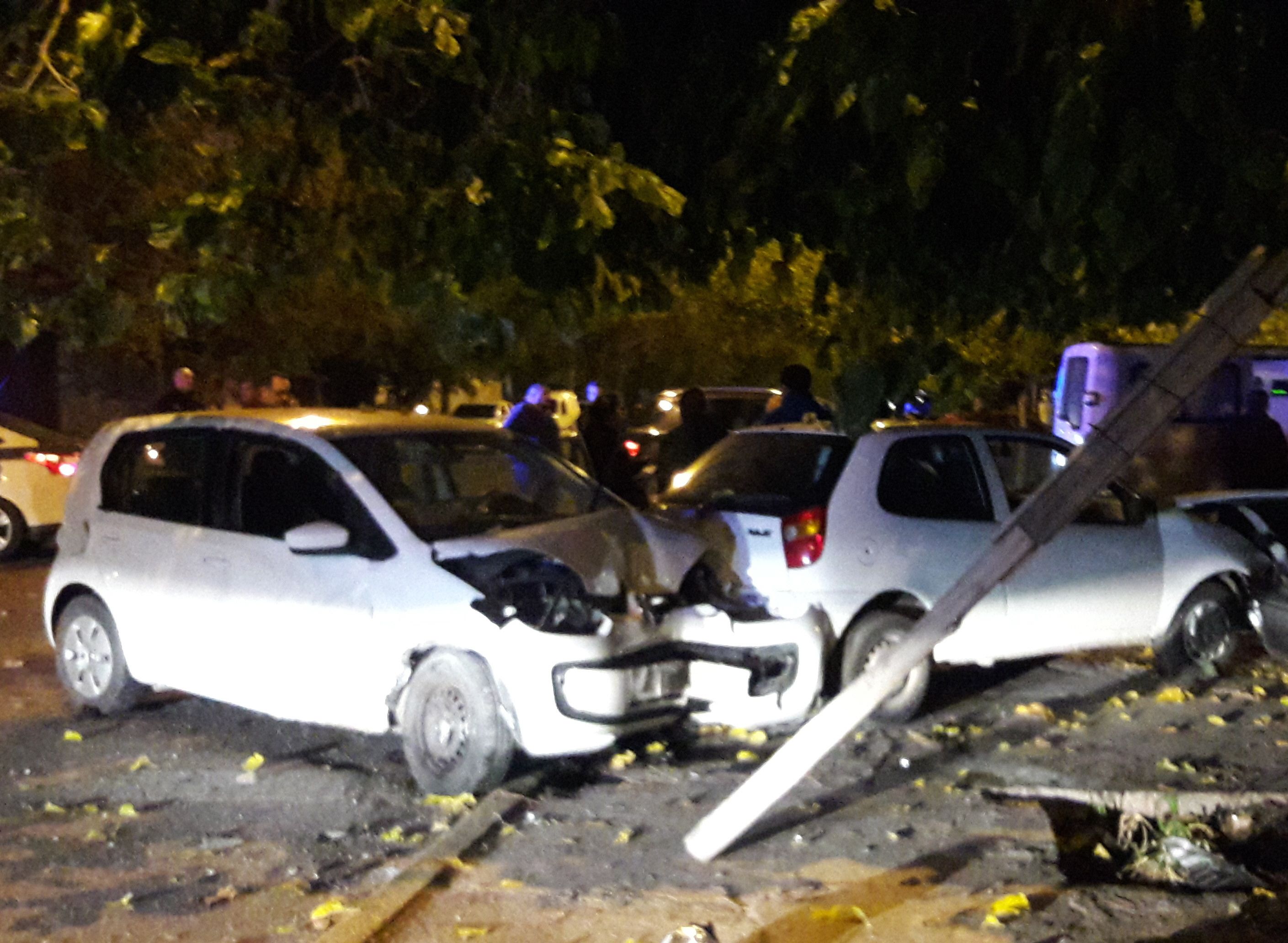 Unos jóvenes protagonizaron ayer a las 2.30 un impresionante choque con auto Volkswagen Up y otro, Fiat Palio, en la intersección de las calles Cortínez y España, en Capital. En uno de los coches viajaban tres chicas, indicaron testigos. Según la Policía, si bien hubo muchos daños en ambos vehículos y hasta derribaron un cartel, hubo heridos leves.