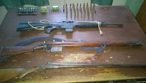Entre las armas, la Policía de la Comisaría 15, individualizó una carabina rifle calibre 7,62 mm, una escopeta doble cañón calibre 16 y un rifle calibre 22. Además hallaron 42 proyectiles 7,62, 70 proyectiles 22, un cartucho 16 pg con perdigones de plomo y dos At 12 de caucho.