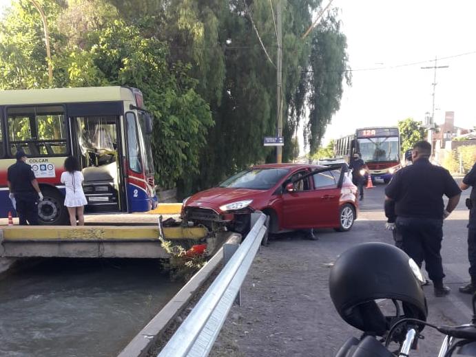Un accidente con suerte se registró pasadas las 7 de este sábado en Santa Lucía. Tres chicas viajaban a bordo de un auto cuando la conductora, de 19 años, hizo una maniobra fallida al doblar y terminó con su vehículo incrustado contra el cordón y el guardarrail, lo que evitó que cayeran al canal.
