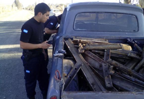 Los policías de la Seccional 20da persiguieron y detuvieron ayer a la tarde a tres hermanos que estaban robando 30 trozos de rieles del ferrocarril, a la altura de la calle Santa Elena en el distrito Alamito, Angaco. Otros cuatro sujetos alcanzaron a huir. Todos ellos se movilizaban en una vieja camioneta Ford, en la cual intentaron huir hasta que se les reventó una cubierta. Los sospechosos tiene entre 23 y 28 años y quedaron a disposición del Juzgado Federal por tratarse de un delito de jurisdicción federal.
