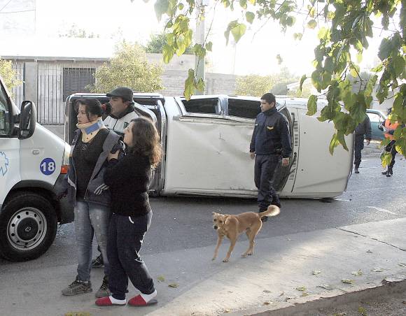 El auto de los Monardes iba de Sur a Norte por Perú y, aparentemente, no frenó al salir a calle Cereceto. Ahí fue que chocó contra el costado izquierdo de la camioneta de Bustos, que transitaba en dirección al Oeste. El golpe fue tremendo, de hecho la Toyota se fue de costado contra el cordón y después se dio vuelta metros más adelante. El auto mientras tanto dio un trompo y se subió a la vereda de una casa de la esquina Noreste.