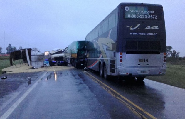 Un terrible accidente ocurrió esta madrugada en la ruta 34, a la altura de Curupaity, en Santa Fe, entre dos camiones y un colectivo de larga distancia de la empresa Vosa.