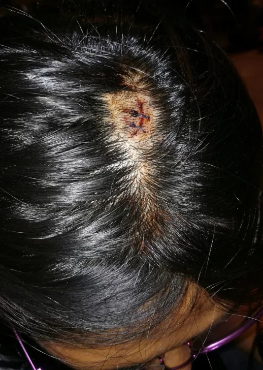 La muchacha tuvo que ser trasladada al mismo nosocomio con traumatismo de cráneo y herida cortante producto del cachazo.