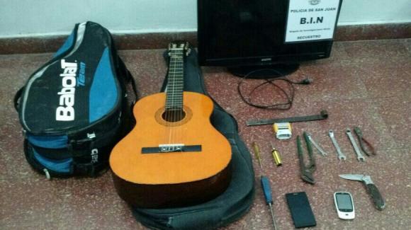 Policías de la Brigada Norte detuvieron a José Sánchez (18), Gonzalo Amaya (19) y un adolescente, todos del Bº 17 de Octubre en Chimbas, por un robo perpetrado días atrás contra una vivienda del Bº La Estancia en el mismo departamento. Secuestraron un TV, una guitarra y otros efectos denunciados por los damnificados.