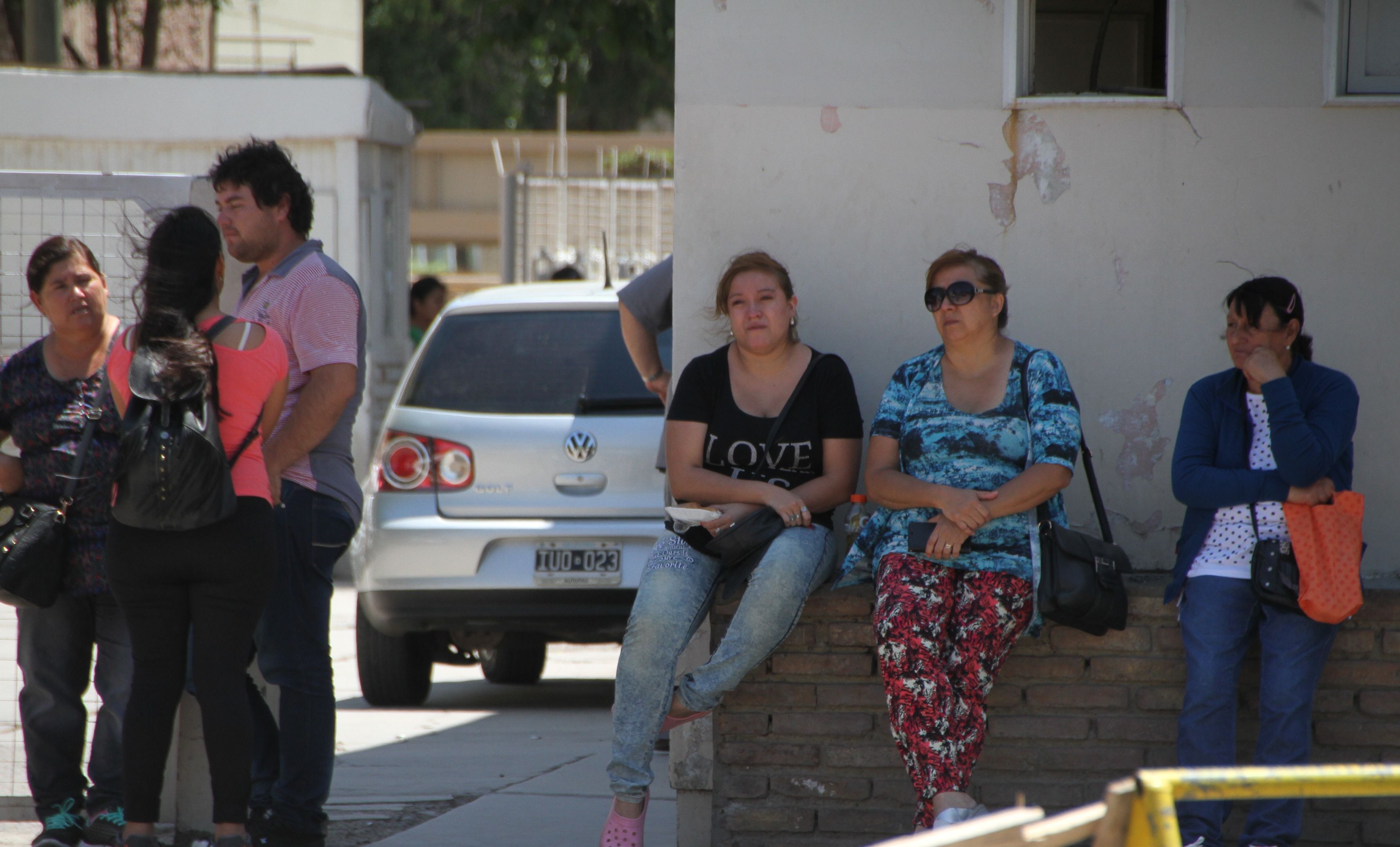 Preocupación. Los familiares del joven caucetero aguardaban en el acceso al sector de Terapia Intensiva del Hospital Rawson para saber cómo evolucionaba.