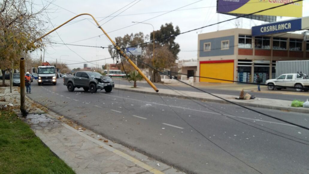 Una flamante camioneta Chevrolet S10 se estrelló este sábado en la mañana contra un poste de alumbrado público y se milagro el hecho no pasó a mayores.