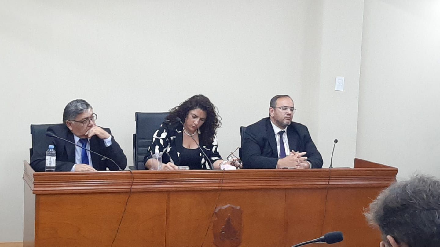 El tribula compuesto por los jueces Verónica Chicón, Alberto Caballero y Andrés Abelín Cottonaro.